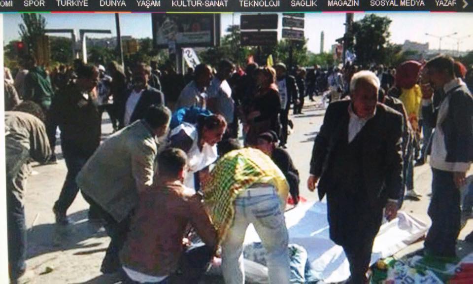 Թուրքիա-      Ծանր պայթումներ   ցնցած են Թուրքիոյ մայրաքաղաք  Անգարան: Կը հաղորդուի, որ պայթումներուն գլխաւորը տեղի  ումնեցած է քաղաքի շոգեկառքի  գլխաւոր կայարանին մօտ:  Ըստ նախնական տուեալներու  կան տասնեակ զոհեր եւ վիրաւորներ: Նշենք, որ   պայթումը  տեղի կ'ունենայ  այն պահուն,  երբ քաղաքի սէնտիքայական մարմինները «Յանուն խաղաղութեան»  խորագրով     երթ մը  պիտի սկսէին: Երթը չէ ջնջուած եւ տասնեակ   քաղաքացիներ  կ'ուղղուին դէպի պայթումին վայրը, ուր նախատեսուած էր   հաւաքուիլ: