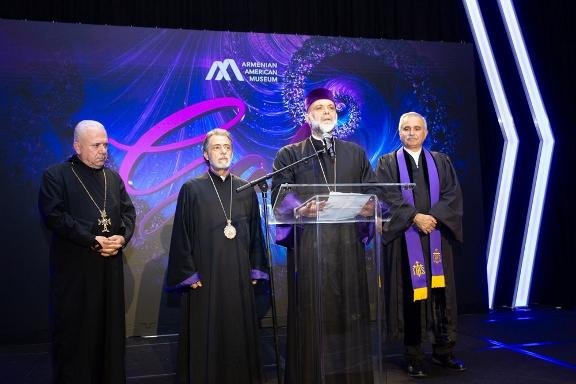 Բացման աղօթքը միասնաբար կատարեցին թանգարանի հոգաբարձական կազմի համաատենապետներ՝ Հայց. Առաքելական եկեղեցւոյ Արեւմտեան Ամերիկայի Հայոց թեմի առաջնորդ Գեղամ արք. Խաչերեան, Հայց. Առաքելական եկեղեցւոյ Հիւսիսային Ամերիկայի Արեւմտեան թեմի առաջնորդ Յովնան արք. Տէրտէրեան, Հիւսիսային Ամերիկայի Հայ աւետարանական միութեան հոգեւոր հովիւ վերապատուելի Հենրիկ Շահնազարեան եւ Ամերիկայի Միացեալ Նահանգներու եւ Գանատայի Հայ կաթողիկէ առաջնորդարանի ներկայացուցիչ հայր Արմենակ Պետրոսեան։