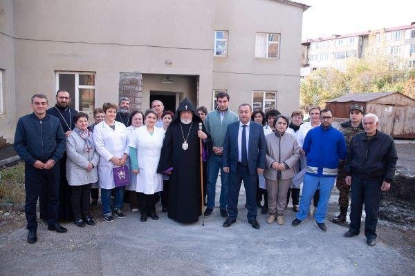 Այնուհետև հայրապետական պատվիրակությունը համայնքային իշխանությունների ուղեկցությամբ այցելեց Ջերմուկ քաղաքի հիվանդանոց, ուր Ամենայն Հայոց Կաթողիկոսը հանդիպեց բուժանձնակազմի հետ, ծանոթացավ առկա դժվարություններին։ Փոխանցելով իր օրհնությունը՝ Հայոց Հովվապետը գնահատանք հայտնեց վերջիններիս անձնվեր ծառայության համար, ինչի շնորհիվ ռազմական գործողությունների ընթացքում փրկվեցին բազմաթիվ կյանքեր։ Բուժանձնակազմի հետ զրույցին անդրադարձ կատարվեց տիրող իրավիճակից բխող անհանգստություններին ու առկա խնդիրներին: