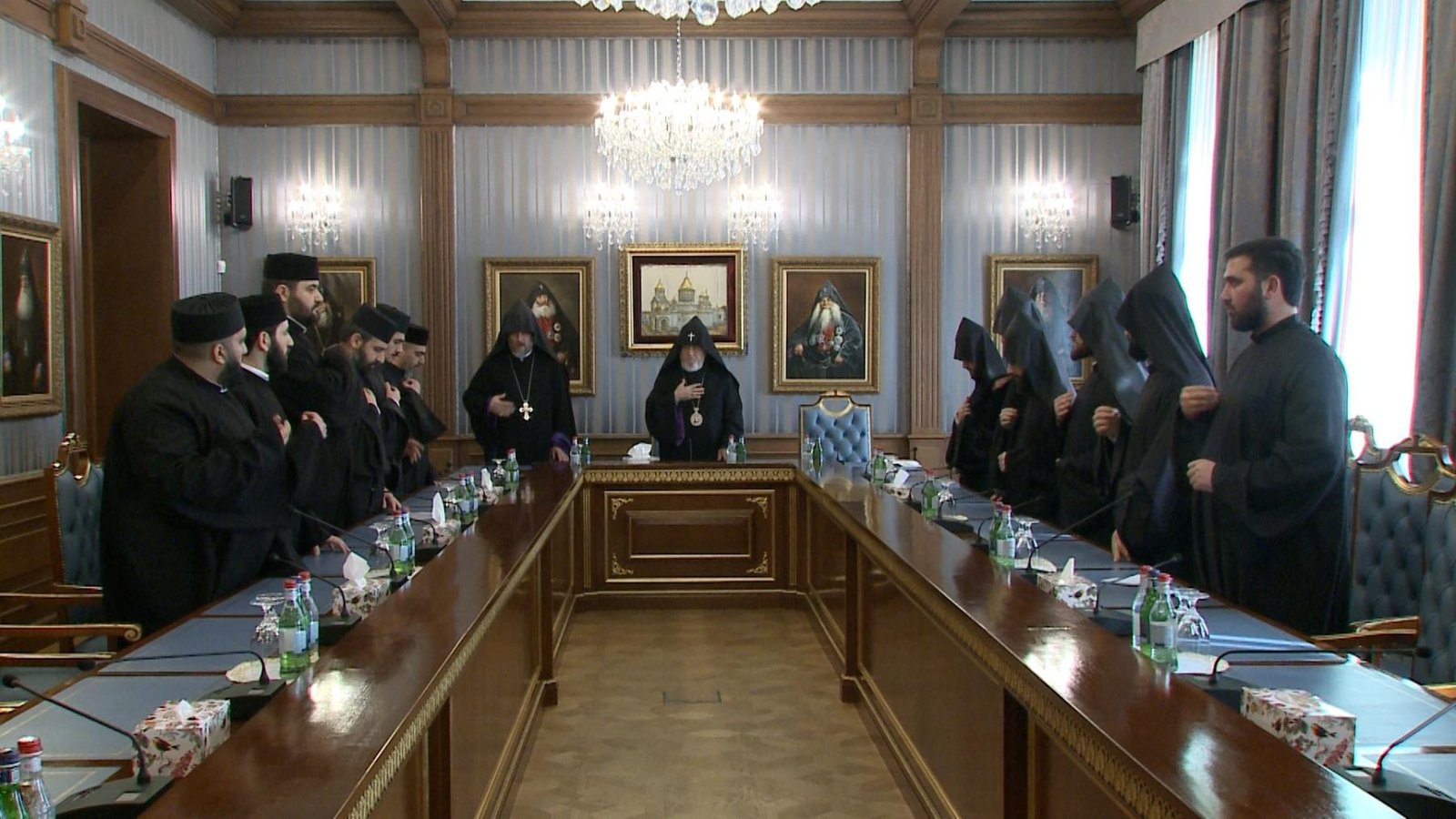 Հանդիպման ավարտին Նորին Սրբությունը «Պահպանիչ» աղոթքով օրհնեց հոգևորականներին և նրանց ընծայեց ձեռաց խաչեր ու Սուրբ Հաղորդության մասնատուփեր:
