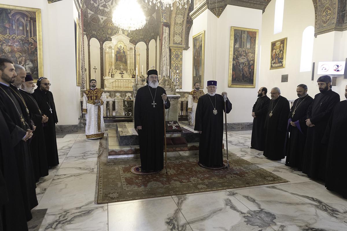 Տաճարում երկու Հովվապետերը խոնարհվեցին Իջման Սուրբ Սեղանի առջև: Միասնական աղոթքից հետո Գարեգին Երկրորդ Ամենայն Հայոց Կաթողիկոսը, հանուն Մայր Աթոռի միաբանության, ողջունեց և իր բարեմաղթանքները հղեց Նորին Սրբություն Մոր Իգնատիուս Եփրեմ Բ Պատրիարքին: