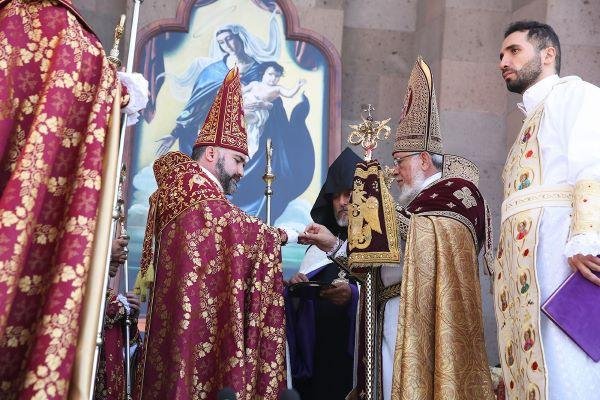 …Բոլորիս հայցով ու աղոթքով եպիսկոպոսացյալ մեր եկեղեցականները երկնառաք շնորհներ ստացան՝ լինելու հոգևոր տեսուչը հավատացյալների, մեր Սուրբ Եկեղեցու ուղղափառ վարդապետության և սրբազան ավանդության պահպանողն ու փոխանցողը, նախանձախնդիր՝ մեր ժողովրդի աստվածասիրության ու հավատքի զորացման։ Իր ծառայության մեջ եպիսկոպոսը կոչված է նմանվելու Քրիստոսին և իր վրա վերցնելու Տիրոջ քաղցր լուծը, իր հավատավոր կյանքով ու գործերով օրինակ լինելու հավատացյալներին։ «Նմանվեք ինձ, ինչպես որ ես՝ Քրիստոսին»,- պատվիրում է Սուրբ Պողոս առաքյալը։ Տիրոջը նմանվելու կոչումն ու ձգտումը Եկեղեցու սպասավորների համար ակունք են զորության՝ մշտարթուն քաջ հովիվ լինելու, հավատացյալներին Քրիստոսով փրկության առաջնորդելու։ Այսպիսի հանձնառությամբ սպասավորության է հորդորում առաքյալը՝ ասելով. «Արածեցրեք Աստծու այդ հոտը, որ ձեզ է հանձնված» (Ա Պետ. 5.2)»։