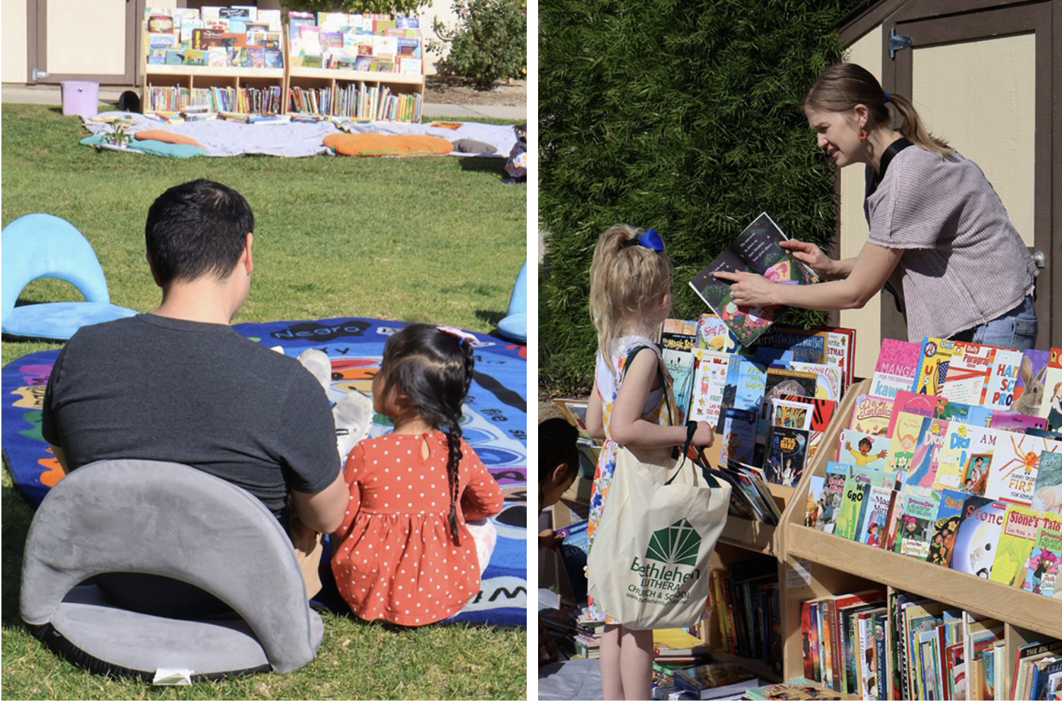 Վարժարանին պարտէզը վերածուած էր բացօթեայ գրադարանի․ ամէն կողմ դարաններ՝ լեցուն մանկամսուրէն մինչեւ չափահասներու յատուկ գիրքերով, որոնք տնօրէնութիւնը հանգանակած էր վարժարանի ծնողներէն, բաժնած եւ դասաւորած՝ ըստ  տարիքի եւ տեսակի, ապա գեղեցկօրէն ցուցադրած պարտէզի չորս կողմերը՝ զայն վերածելով խայտաբղէտ բացօթեայ գրադարանի մը: