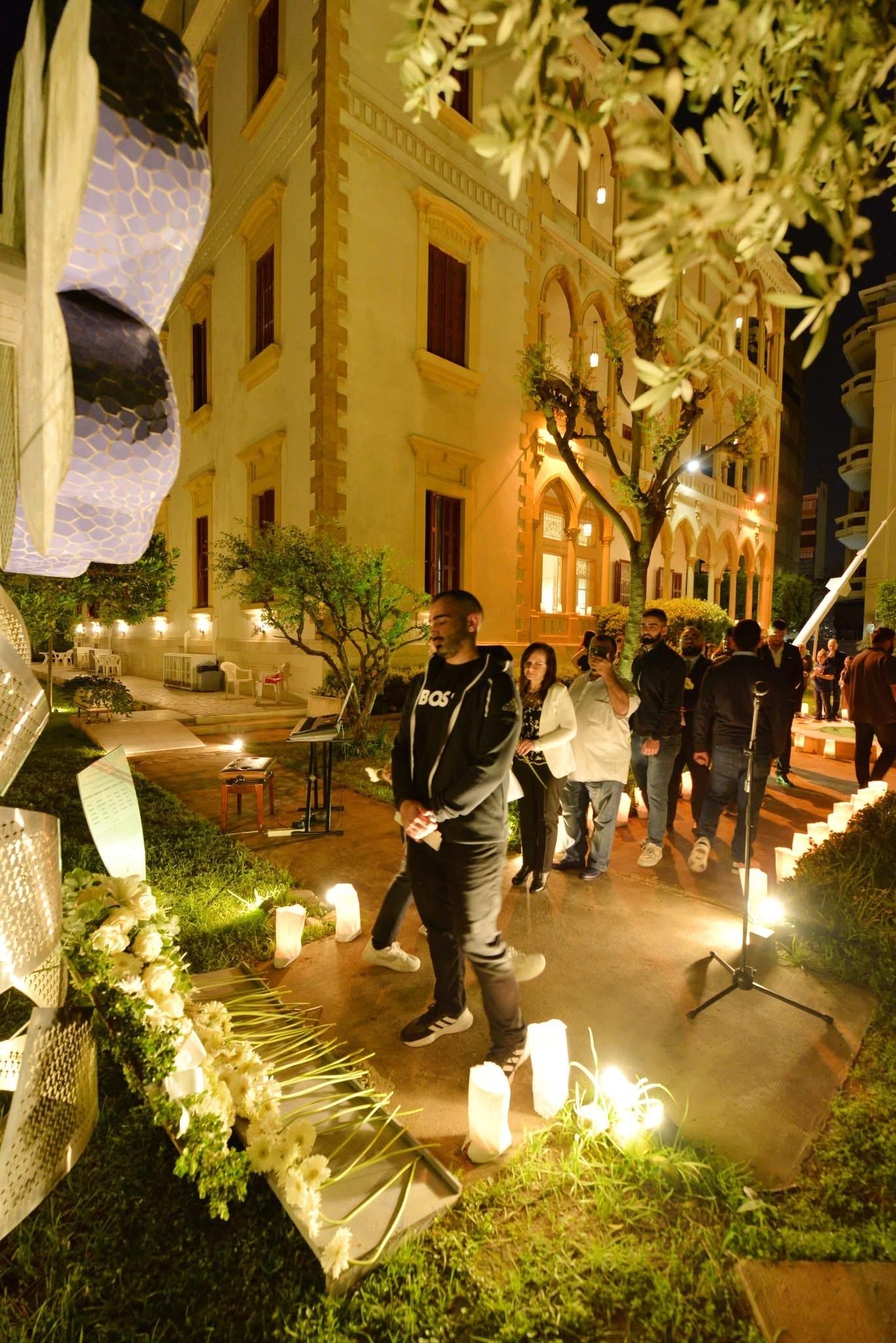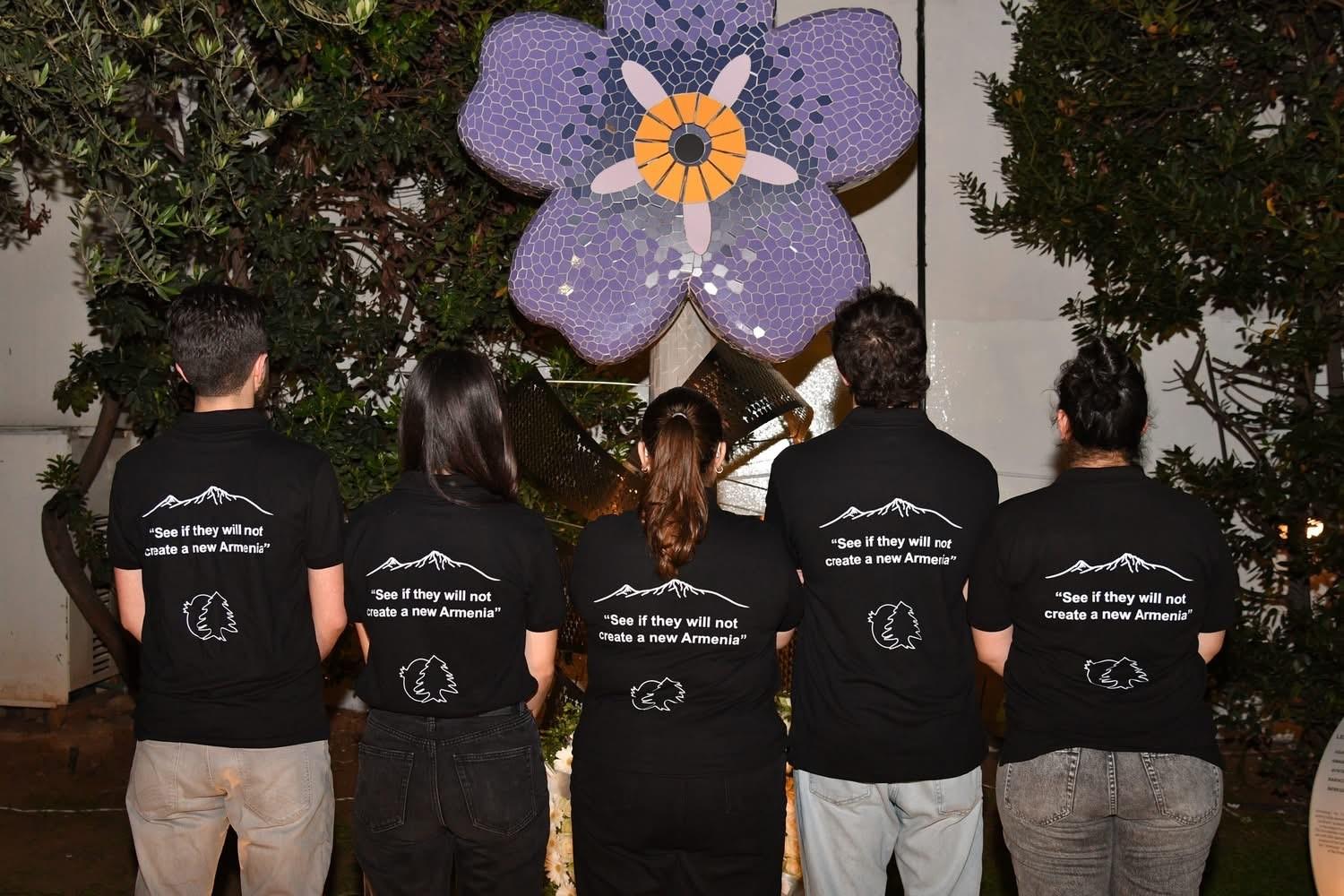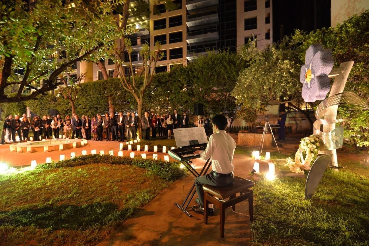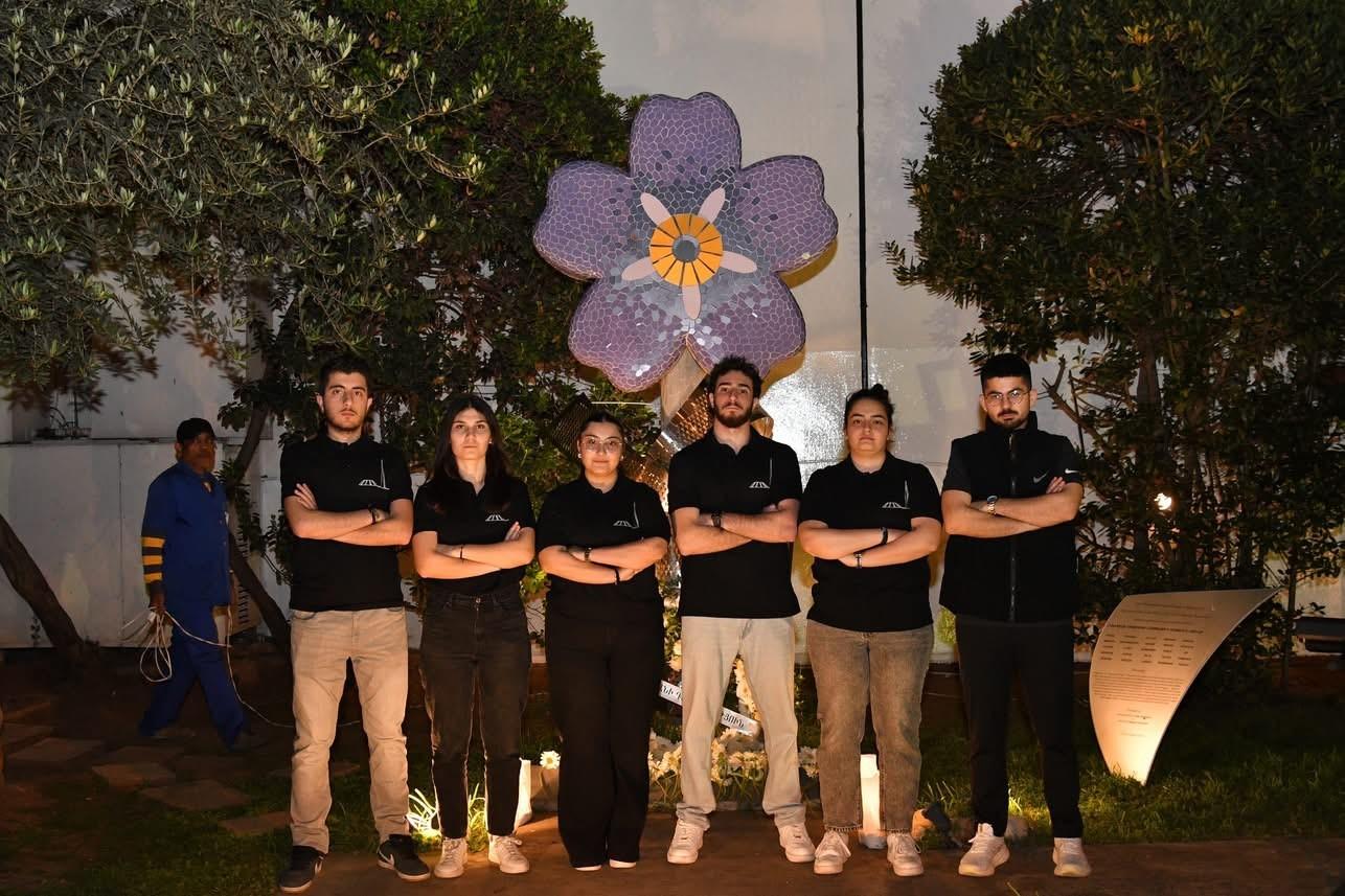 On the evening of April 24, members of the Haigazian University community gathered in the Mugar Garden for a moving ceremony marked by light, music, reflection, and prayer. In a solemn circle, participants paid tribute through candles, white flowers, and shared silence, placing blossoms beneath the symbolic “Forget Me Not” monument in remembrance of the victims of the Armenian Genocide (1915–1923).
