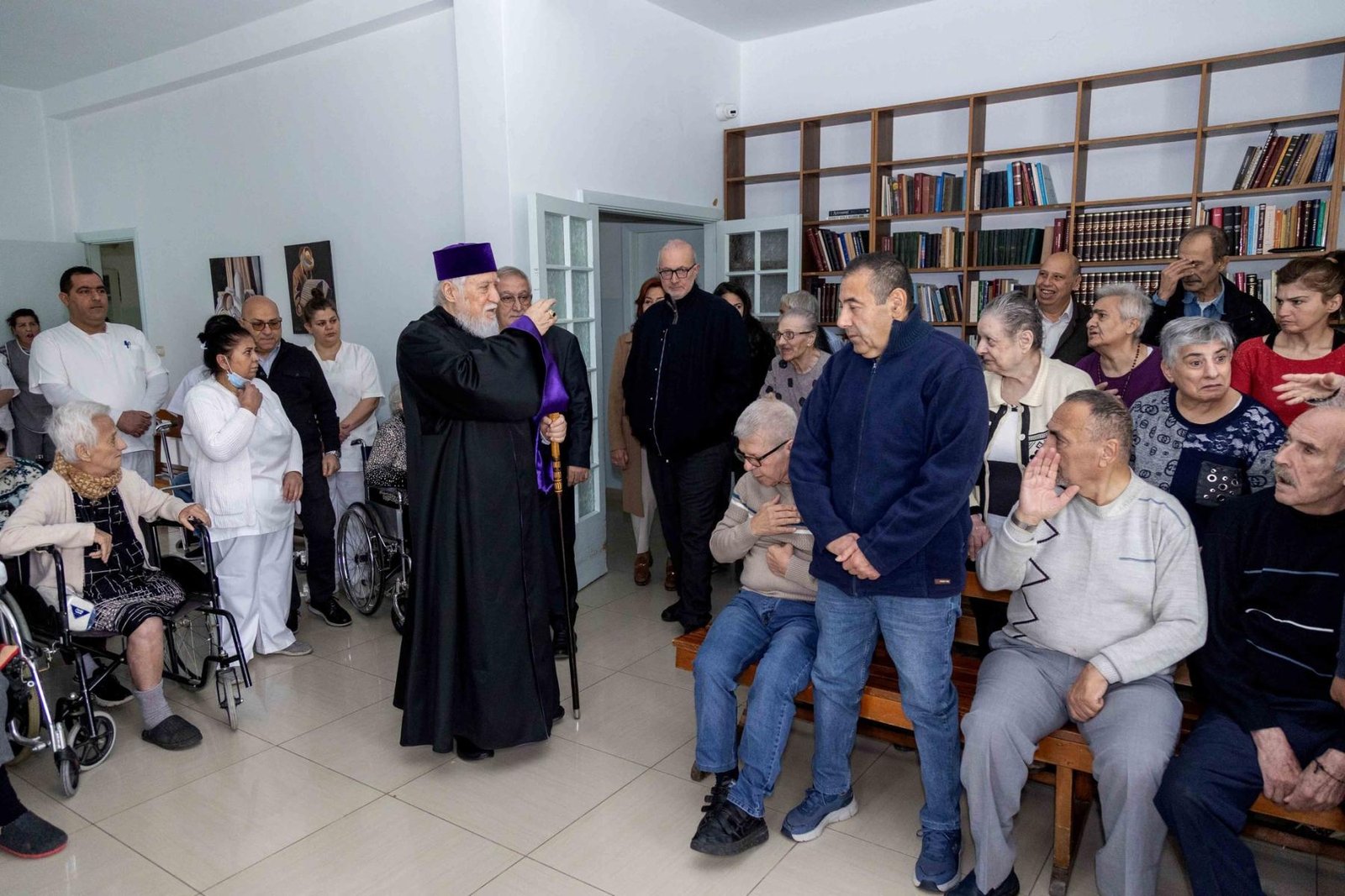 Նորին Սուրբ Օծութիւնը իր օրհնութեան խօսքը ուղղելով՝ առաջին հերթին գնահատեց հոն տարուող առաքելութիւնը՝ յիշեցնելով, որ, ինչպէս հաստատութեան անունը կը յուշէ, ազգային տուն է բուժարանը եւ կը պատկանի ազգին, ուստի անոր բնակիչներուն հոգատարութիւնը կը տարուի ազգին կողմէ: Վեհափառ Հայրապետը իր խօսքին մէջ խրախուսեց մեր մամիկներն ու պապիկները, որպէսզի մնան ամուր ու կորովալի՝ ընդգծելով, որ անոնք առանձին չեն, այլ մենք՝ բոլորս անոնց կողքին ենք: Վերջապէս, Նորին Սրբութիւնը աղօթեց, որ Աստուած քաջառողջութիւն ու խաղաղութիւն պարգեւէ անոնց։