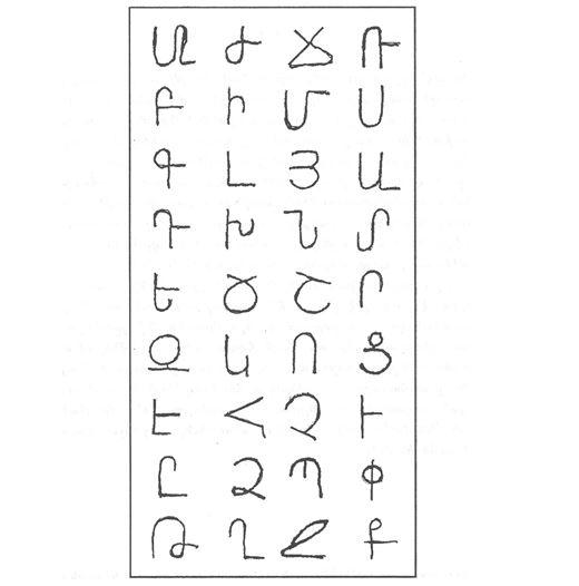 Հին աշխարհի այբուբեններէն միակը, որուն ծննդաբանութիւնը գրաւոր վկայուած է ժամանակակիցի մը կողմէ,− հայերէ՛նն է, մնացեալներունը՝ փիւնիկերէնի, եբրայերէնի, արամէերէնի, յունարէնի, լատիներէնի, ղպտերէնի ու ասորերէնի...կը մնան այսպէս կամ այնպէս անծանօթ:
