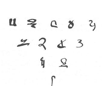 3.Այս նշանագրային նմուշները առնուած են եգիպտական մեհենագրերու երրորդ եւ վերջին սերունդի տարբերակէն, որ գրաբանութեան մէջ ծանօթ է Demotika անունով, այսինքն՝ ռամկագիր, ժողովրդագիր, եւ կիրարկուած է մօտաւորապէս 8-րդ դարէն (Քա.) մինչեւ 5-րդ դարի կէսը (Քե.):