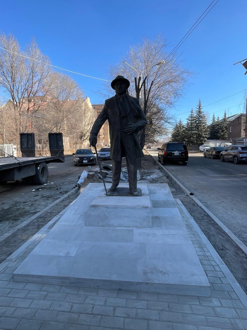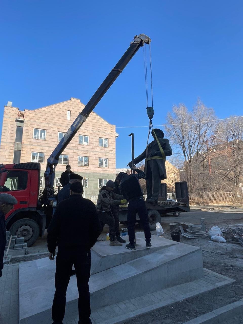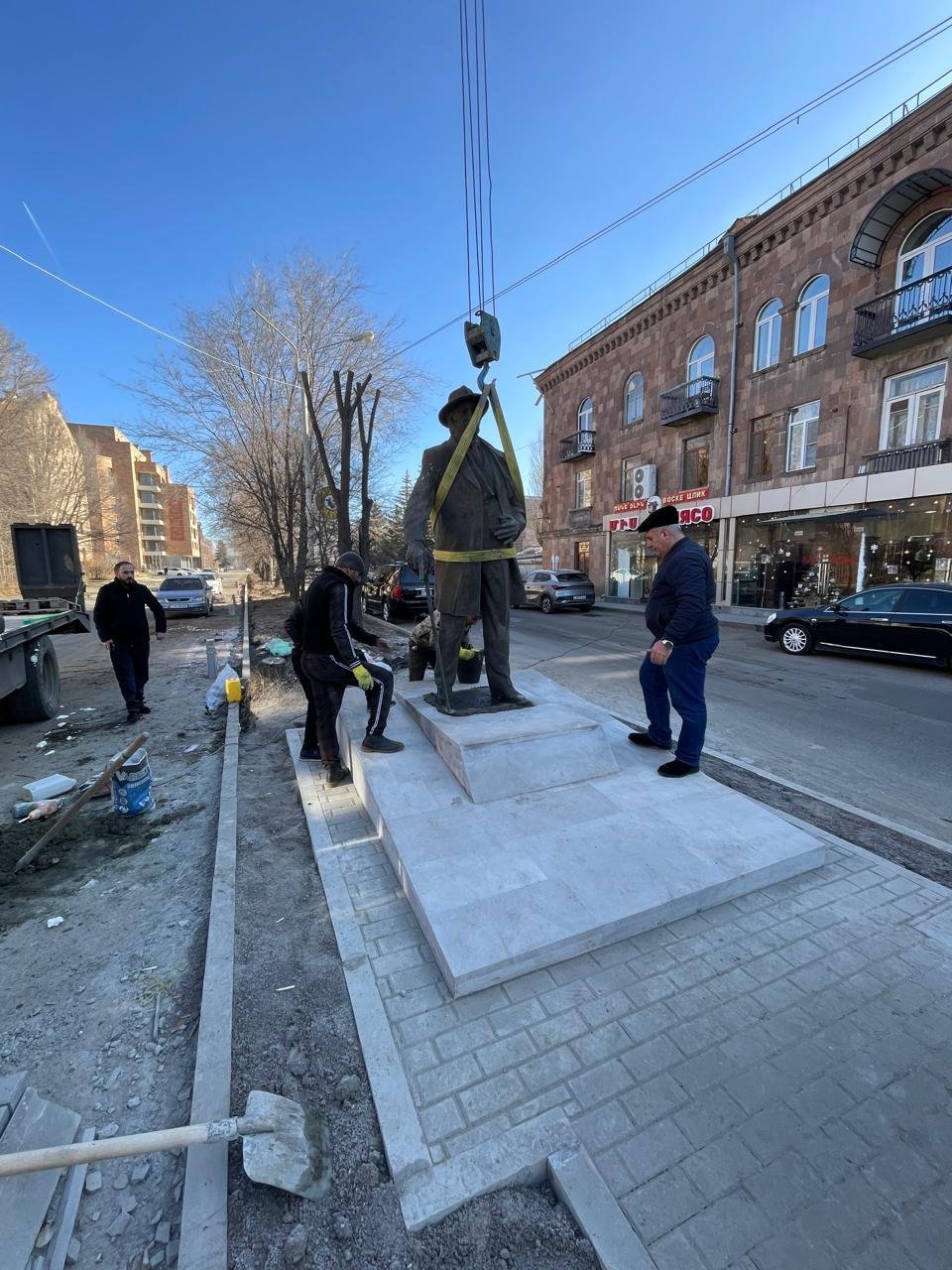 Արձանը արդէն տեղադրուած է քաղաքի Պռօշեան եւ Գարեգին Նժդեհ փողոցներու խաչմերուկին՝ Գիւմրիի Համայնքապետարանի, «Կումայրի» պատմամշակութային արգելոց-թանգարանի եւ վերջինիս մասնաճիւղ հանդիսացող Քանդակագործութեան ազգային թանգարանի համատեղ ջանքերով։ «Կումայրի» պատմամշակութային արգելոց-թանգարանը լուր հաղորդելով նաեւ կը տեղեկացնէ, որ արձանի քանդակագործն է Միսակ Մելքոնեանը, իսկ թանգարանն իր երախտագիտութիւնը կը յայտնէ նախաձեռնութեան իրականացման մէջ ներդրում ունեցած բոլոր բարերարներուն եւ աջակիցներուն՝ տեղեկացնելով, որ բացման պաշտօնական օրը պիտի յայտարարուի յառաջիկային։