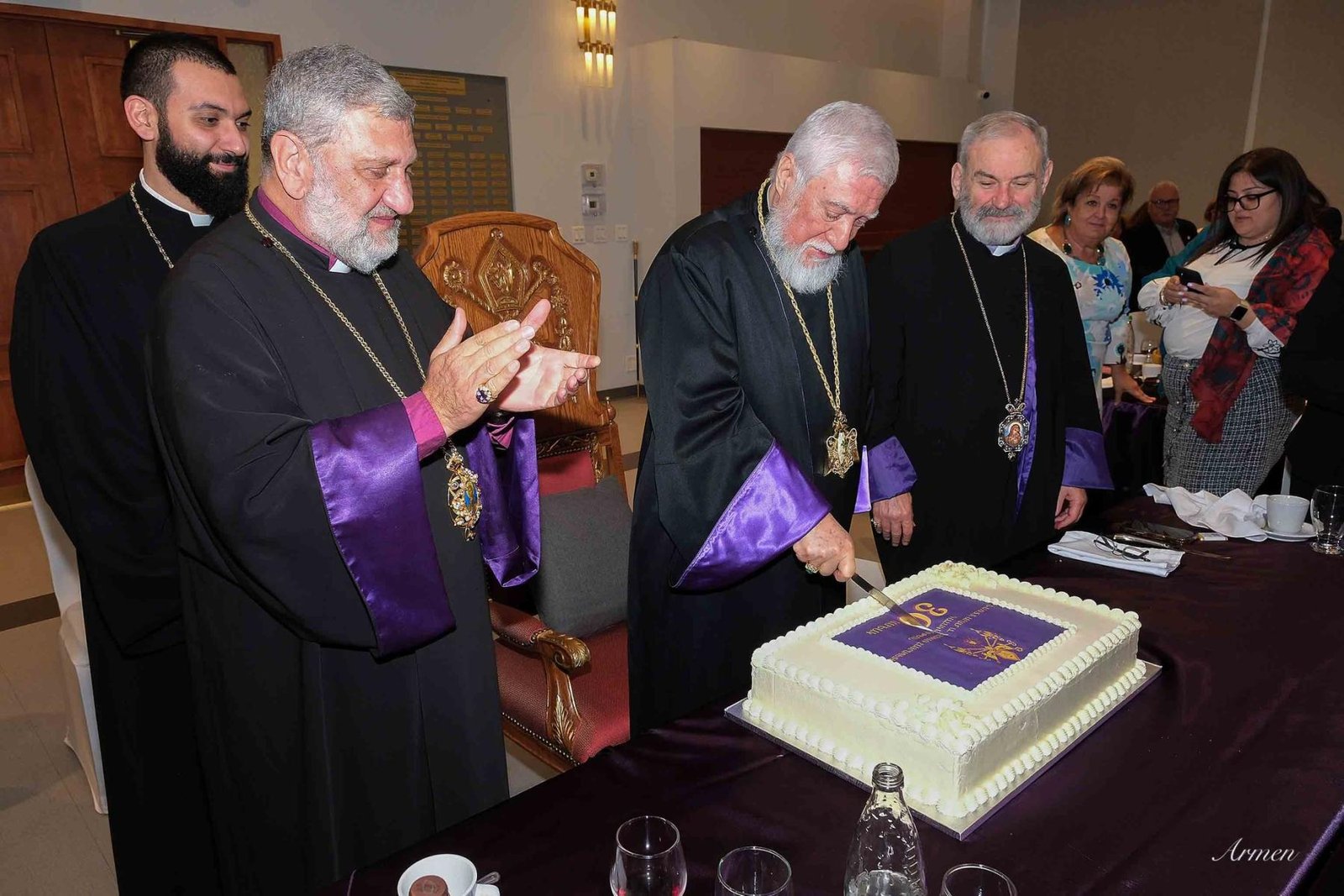 Ճաշկերոյթէն ետք ներկաներուն յանձնուեցաւ Վեհափառ Հայրապետին 30-ամեայ գահակալութեան նուիրուած նկարազարդ քաթալոկը։