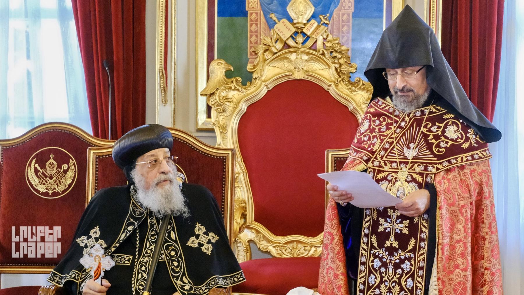 Մեր Հոգեւոր Պետը դրուատիքով խօսեցաւ Հայ Առաքելական եւ Ղըպտի Ուղղափառ քոյր եկեղեցիներու սերտ յարաբերութեան, ինչպէս նաեւ քաղաքիս մէջ առկայ միջեկեղեցական յարաբերութեանց մասին, որ ոչ միայն երկխօսութիւն է, այլ նաեւ ճշմարտութեան եւ սիրոյ մէջ արմատաւորուած կենդանի հաղորդութիւն։