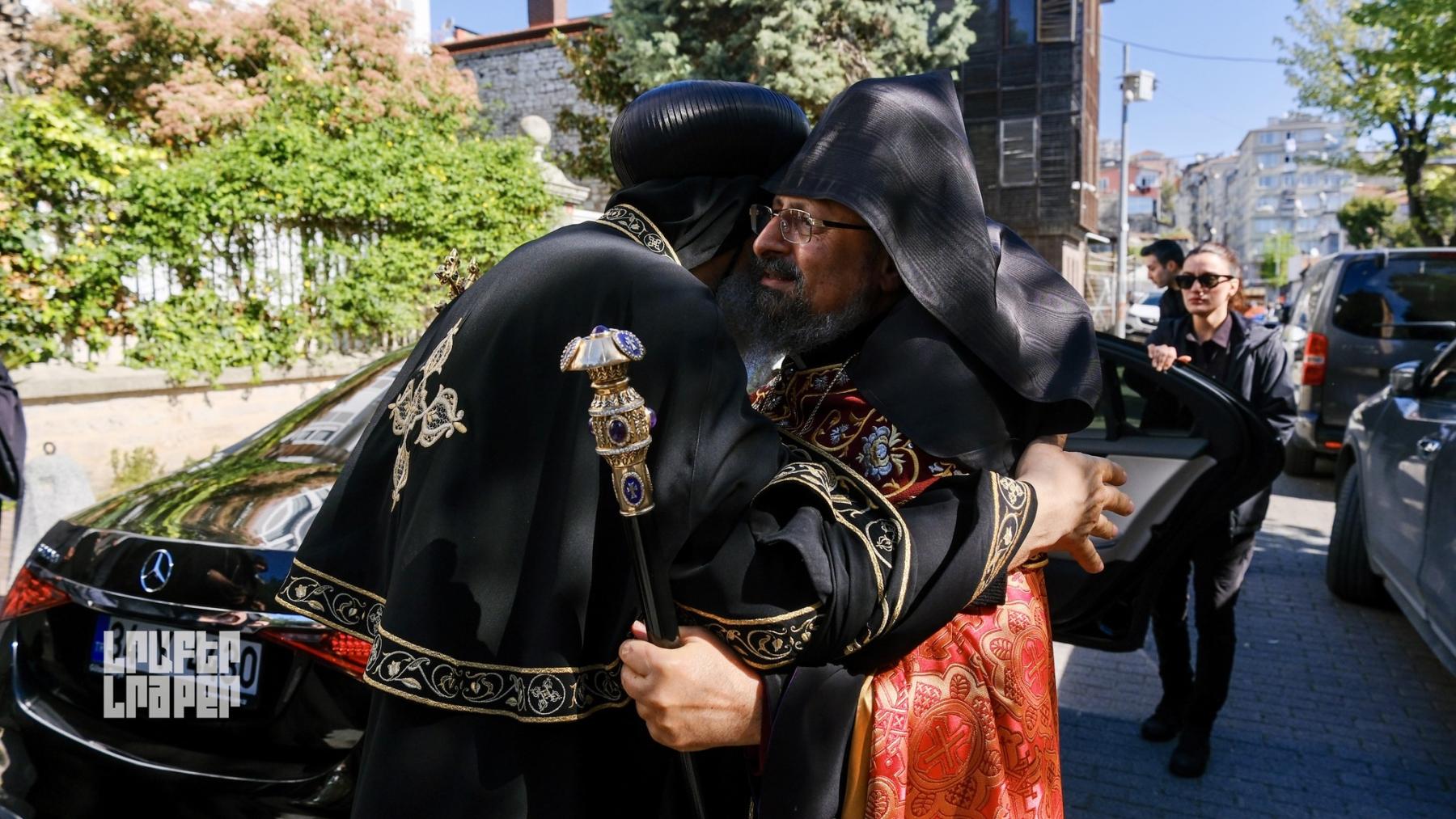 Նորին Սրբութիւնը ժամը 09.00-ին, Մայր Տաճարի առաջ զանգակներու ղօղանջին ներքեւ դիմաւորուեցաւ Ն.Ա.Տ. Սահակ Բ. Պատրիարք Հօր կողմէ, որու կողքին էին Գերշ. Տ. Արամ Արքեպս. Աթէշեան, Աթոռոյս միաբան հայրերն ու քահանայից ու ժառանգաւորաց դասերը։