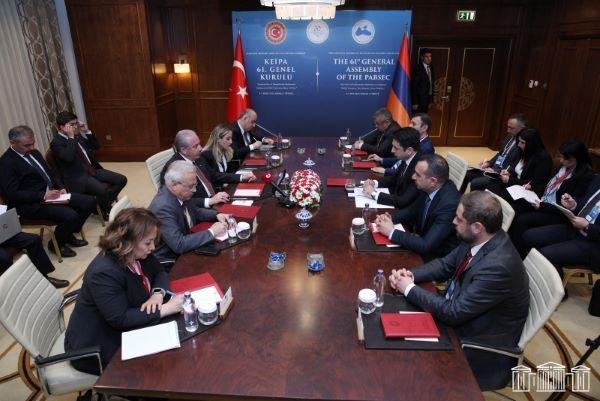 Նշուած է, որ պաշտօնական հանդիպումէն առաջ երկու երկիրներու խորհրդարաններու ղեկավարները մօտ 20 վայրկեան տեւողութեամբ առանձնազրոյց ունեցած են: