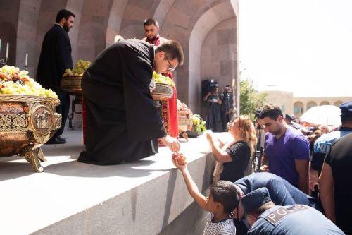 Սուրբ Պատարագի ավարտից հետո եկեղեցական թափորը Սուրբ Գայանե վանքից ուղղվեց դեպի Մայր Աթոռ Սուրբ Էջմիածնի Սուրբ Տրդատի բաց խորան, որտեղ հանդիսապետությամբ Ամենայն Հայոց Կաթողիկոսի, կատարվեց «Խաղողօրհնեքի» հանդիսավոր կարգը: Օրհնված խաղողի ողկույզները բաժանվեցին հավատավոր ժողովրդին: