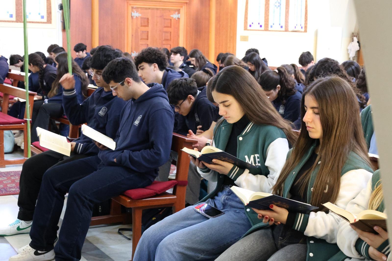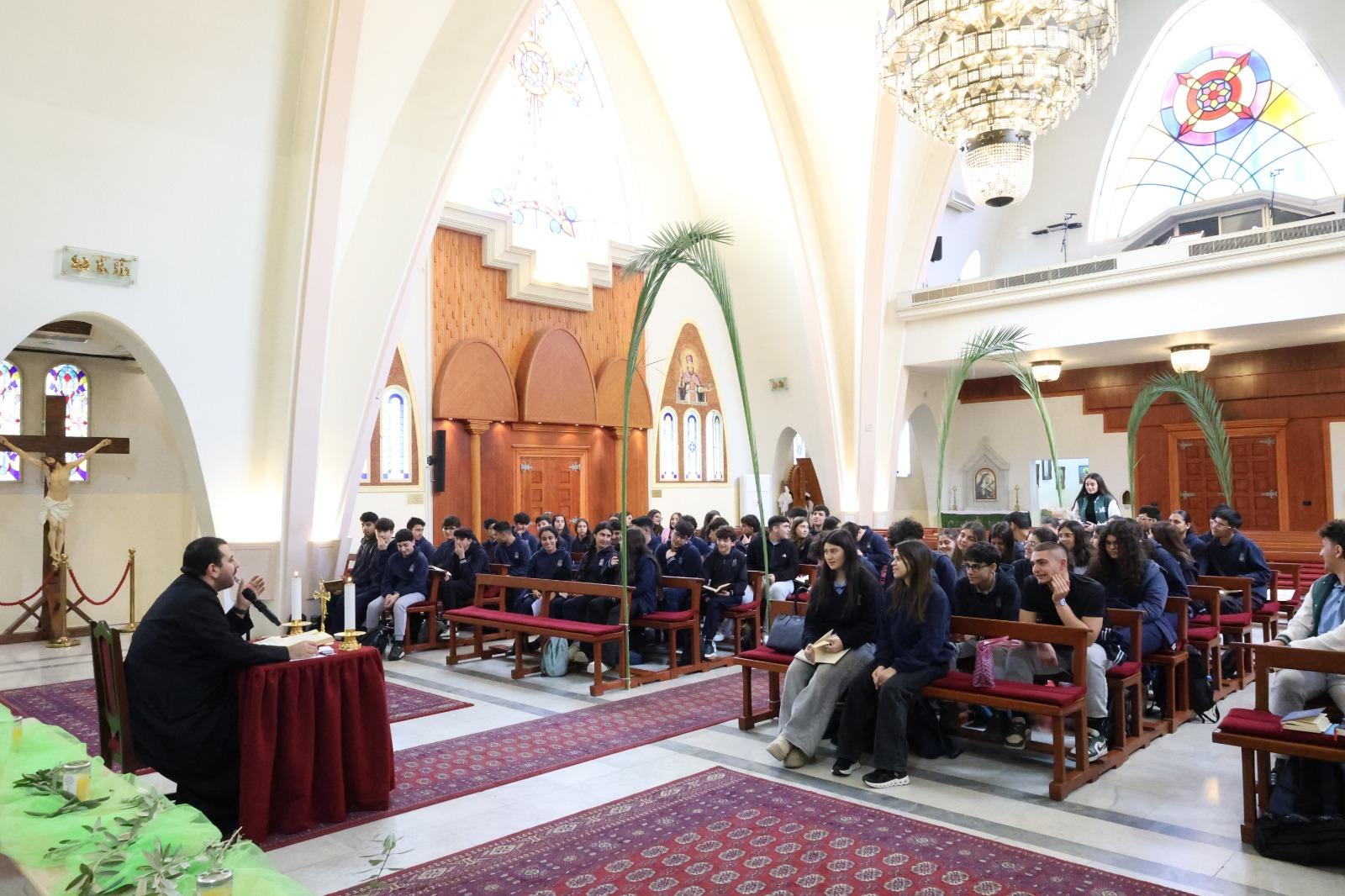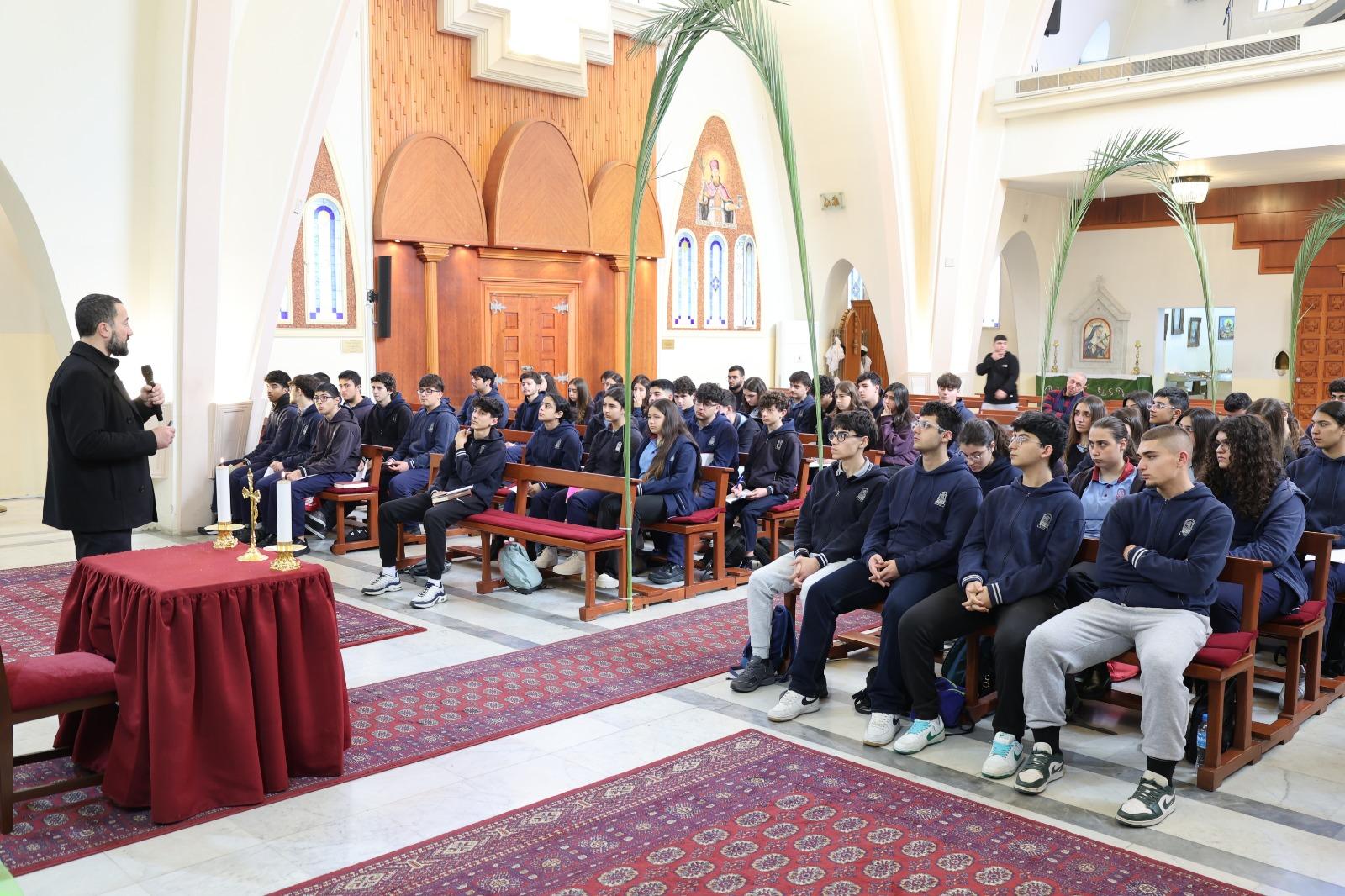 Աւագ Երկուշաբթի, 30 Մարտ 2026-ի, առաւօտեան ժամը 7։30-ին, Հայ Կաթողիկէ Մեսրոպեան Բարձրագոյն Վարժարանի եկրորդական բաժնի աշակերտութիւնը համախմբուեցաւ հոգեւոր ամփոփումի սրբազան մթնոլորտի մէջ։