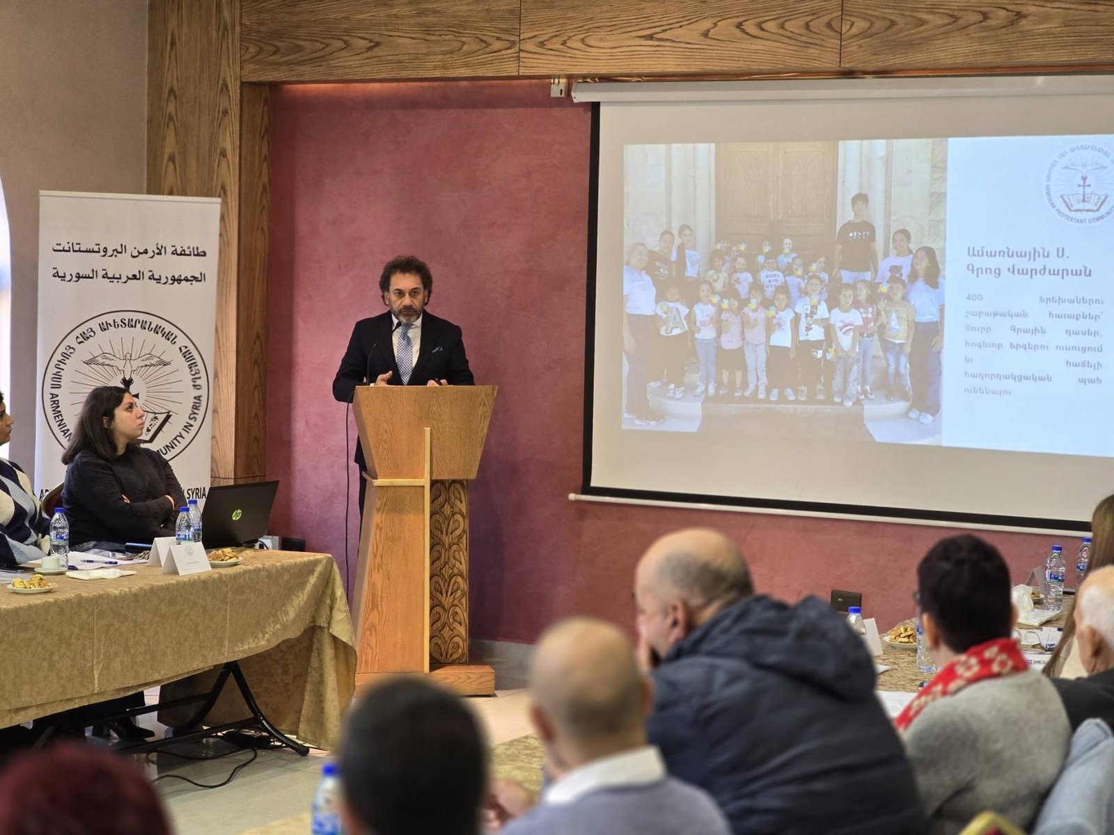 Նախագահութեամբ Սուրիոյ Հայ Աւետարանական Համայնքի Պետ Վեր. Դոկտ. Յարութիւն Սելիմեանի, Շաբաթ, 13 Դեկտեմբեր 2025-ին, կէսօր ժամը 12:00-ին, Սուրիոյ Հայ Աւետարանական Համայնքապետարանի «Թեհլիրեան» սրահէն ներս գումարուեցաւ 2025 տարեշրջանի Սուրիոյ Հայ Աւետարանական Համայնքային Ընդհանուր Ժողովը։