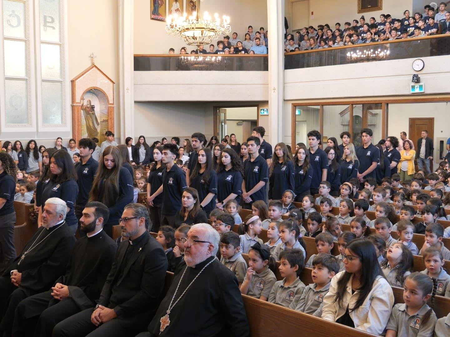 Ուրբաթ 12 Սեպտ. 2025ի առաւօտեան ժամը 9-ին, Հ.Օ.Մ.-ի Ամենօրեայ վարժարանի աշակերտութիւնը եկեղեցի յաճախեցին, ընկերակցութեամբ տնօրէնութեան, ուսուցչական կազմին, կրթական մարմնին, Հայ Կեդրոնի պատասխանատու մարմնին, Հ.Օ.Մ.-ի շրջանային եւ Ռուբինա մասնաճիւղի վարչութեանց. ներկայ էին նաեւ, Ս. Երրորդութիւն Եկեղեցւոյ Հոգեւոր Հովիւ Տէր Հայարի Քհնյ. Թանաշեան, Հայ Կաթողիկէ եկեղեցւոյ հովիւ՝ Արժ. Տէր Հայկ Քհնյ. Շահինեան եւ Հայ Աւետ. Եկեղեցւոյ հովիւ՝ Պատ. Զոհրապ Սարգիսեան: