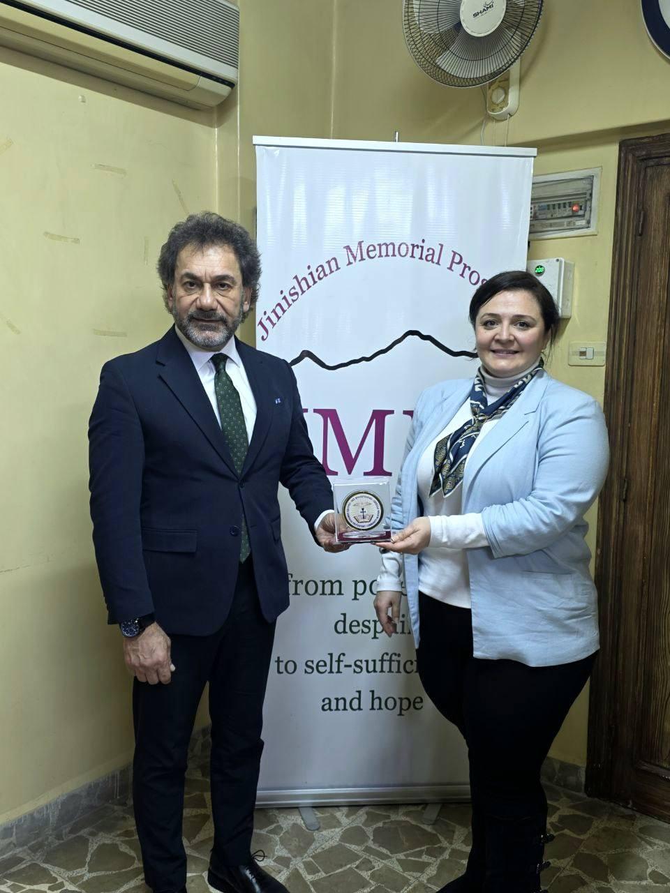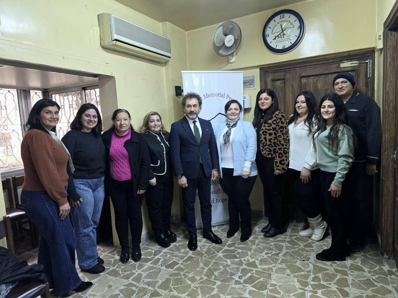 Ուրբաթ, 13 Փետրուար 2026-ին, Սուրիոյ Հայ Աւետարանական Համայնքի Պետ Վերապատուելի Դոկտ. Յարութիւն Սելիմեան եւ Սուրիոյ Հայ Աւետարանական Համայնքի անձնակազմը պաշտօնական այցելութիւն տուին Ճինիշեան Յիշատակի Ձեռնարկի տնօրէնութեան եւ անձնակազմին։