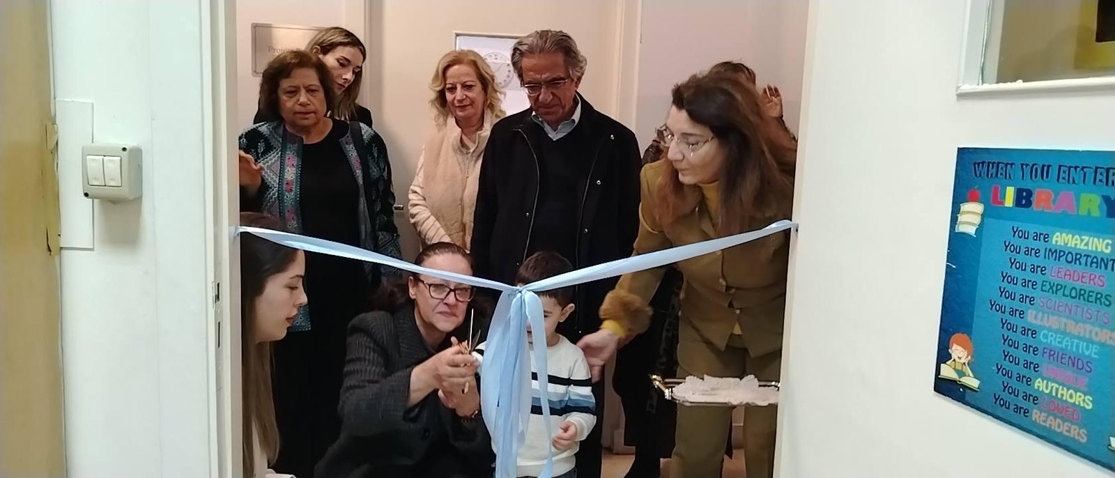 Ռ.Ա.Կ. Լիբանանի Շրջանային վարչութեան ատենապետ Տոքթ. Աւետիս Տագէսեանի սրտառուչ խօսքէն ետք գրադարանին կապոյտ ժապաւէնը հատեցին ողբացեալի այրին Տիկ. Կարինէն եւ թոռնիկ՝ փոքրիկն Վազգէն Ժամկոչեան։