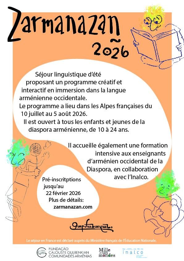 Le projet éducatif « Zarmanazan », initié en 2017 par le Département des communautés arméniennes de la Fondation Calouste Gulbenkian, fait partie du programme de revitalisation de l’arménien occidental. Il est organisé en partenariat avec l’association Mille et un mondes (Lyon- France) et l’Institut National des Langues et Civilisations Orientales (Inalco-Paris).