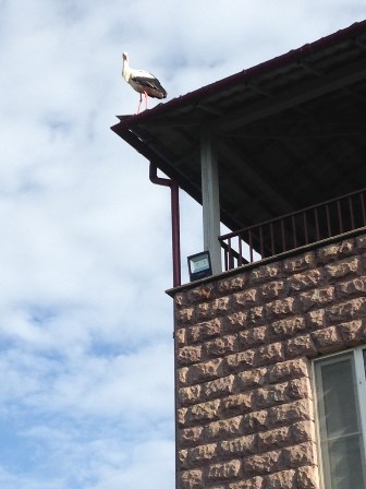 Հարեւան Հիլտայի շունը` Ճերմակը, այս առաւօտ անդադար կը հաջէ, մեր կտուրի կողմը նայլով։ Կ’ենթադրենք, որ հոն բոյն դրած ծիտիկներն են (ճնճղուկները պիտի ըսէինք մենք), իր ուշադրութեան առարկան։ Սակայն, Հիլտան կը հեռաձայնէ եւ կ’ըսէ, որ արագիլ մը թառած է մեր կտուրին... Արագիլները մեր գիւղին մէջ հազուադէպ են։ Անմիջապէս դուրս կ’ելլենք տեսնելու։ Այս արագիլը բոլորովին կ’անտեսէ Ճերմակի հաջոցը եւ կանգնած իր շուրջը կը դիտէ։ Բաւական կը համենայ կտուրին վրայ այնպէս որ կը յաջողիմ նկարել զայն։