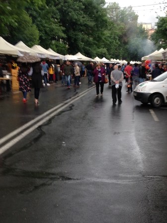 Սարեան փողոցը փակ է ինքնաշարժներու երթեւեկութեան համար։ Փողոցի երկու կողմերը զետեղուած են նոյնանման սպիտակ վրաններ։ բազմազան գինեգործներ եւ սնունդի մատակարարներ տեղաւորուած են անոնց տակ։ Շամփուրի վրայ խորովող գոճիէն (խոզի ձագ) մինչեւ արեւելեան «շաուրմա», խորոված, անուշեղէնի տեսակներ, փրդուճներ (sandwitch), պանիրներու տեսականի, եւ բազմաթիւ գինիի տաղաւարներ... Փողոցի մէկ ծայրը կայ նուագախումբ մը։ Այցելուները այս պահուն տակաւին նօսր են առիթը տալով մեզի շրջագայելու տաղաւարէ տաղաւար եւ տեսնելու ցուցադրուած ապրանքները։ Նոյն փողոցին վրայ նորաբաց «Կուրու» ճաշարանը կը հանգրուանենք։ Ճաշէն ետք երբ դուրս կ’ելլենք փողոց, քալելը արդէն անկարելի է։ Խուռներամ բազմութիւն մը կը ջանայ շարժուիլ փողոցին վրայ։ Շատերու վզէն կախուած է կարմիր քսակ մը, իսկ իրենց ձեռքին գինիի բաժակ մը։ 4000 դրամի (մօտ ութ ամերիկեան տոլար) կարելի է ձեռք ձցել այս տոպրակը, բաժակը եւ կտրօններ համտեսելու մօտ երեքտասնեակ տեսակի գինիներ... Երբ կը սկսի մթնել, կը վերադառնանք տուն։ Դեռ տուն չհասած կը սկսի տեղատարափ անձրեւ մը... Կրնամ երեւակայել, որ այդ խիտ բազմութիւնը ինչպէս ընկալեց այս տեղատարափը...Ափսոս։