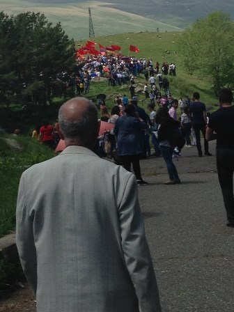 Մեր խումբը բաւական մեծ է, մօտ 500 հոգի։ Մարդատարներուն մօտ կրկին հաւաքուիլը ժամանակ կ’առնէ։ Յուշահամալիրի մօտէն անցնող մայրուղին կայանատեղիի կը նմանի, երկար քալելէ ետք կը հասնինք մեր ինքնաշարժին... Կազմակերպիչները մեզի կը բաժնեն շշալցուած ջուր եւ բրդուճներ։ Կազդուրուած, ճամբայ կ’ելլենք դէպի Վանաձոր։