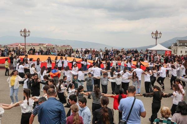 Ստեփանակերտի Վերածնունդի հրապարակին վրայ 9 մայիսին կայացած է «Ո՛Չ Արցախի ցեղային զտման» պահանջագիրի եւ ստորագրահաւաքի նախաձեռնող խումբի կողմէ կազմակերպուած հանրահաւաքը։