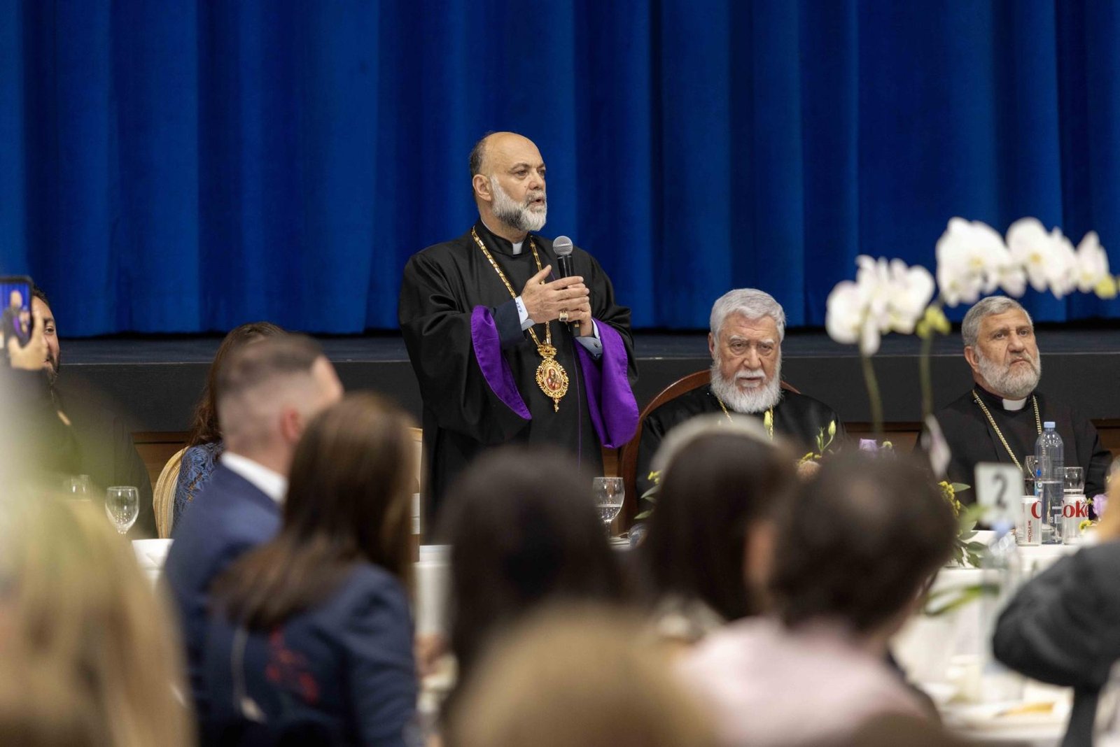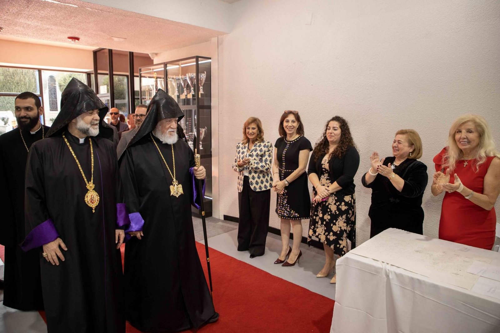 Հաւաքին իր սիրտի խօսքը արտասանեց Արեւմտեան հայոց թեմի առաջնորդ Գերաշնորհ Տ. Գեղամ Արք. Խաչերեան։ Ան ըսաւ. «Այս սրահին մէջ, մեր հոգեւոր հօր՝ Ն.Ս.Օ.Տ.Տ. Արամ Ա. Վեհափառին շուրջ հաւաքուած ենք որպէս արեւմտեան թեմի մեծ ընտանիք: Նորին Սրբութեան հովուապետական այցելութեան ամենամտերմիկ ու հարազատագոյն առիթն է այս հաւաքը։ Հայրապետը եկած է ըլլալու մեր թեմի զաւակներուն հետ, լսելու անոնց մտահոգութիւնները եւ խօսելու մեր ծառայութիւնը առաւել ծաւալելու կարելիութեանց մասին: Հետեւաբար, այսօր իւրաքանչիւրիս համար պատմական առիթ է: Թոյլ տուէք ձեր անունով, սիրելի՛ զաւակներ մեր թեմին, Վեհափառ Հայրապետին մեր սրտագին ու ջերմ բարեմաղթութիւնները փոխանցեմ՝ խնդրելով ամենակալ Աստուծմէ երկար, առողջ ու արդիւնաւէտ ծառայական տարիներ Նորին Սրբութեան»: