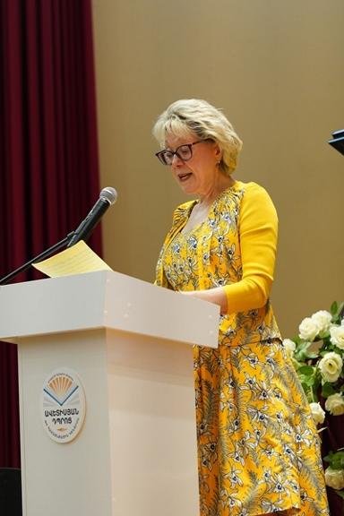 Հրաժեշտի հանդէսը լի էր հաճելի անակնկալներով: Դրանցից առաջինը դպրոցի բարերար՝ հանգուցեալ Էդուարդ Աւետիսեանի կնոջ՝ Փամելա Աւետիսեանի ելոյթն էր… հայերէնով: «Ձեզ սիրող ընտանիքներէն ձեզի փոխանցուած եւ այս սրբազան վայրին մէջ դաստիարակուած արժէքները պիտի առաջնորդեն ձեզ մարտահրաւէրներ յաղթահարելու վճռակամութեամբ, անսահման երազելու քաջութեամբ եւ այն անվերապահ հաւատքով՝ որ դուք ունիք՝ տարրական փոփոխութիւններ ստեղծելու եւ իրականացնելու ուժը», ըսաւ Աւետիսեանը։