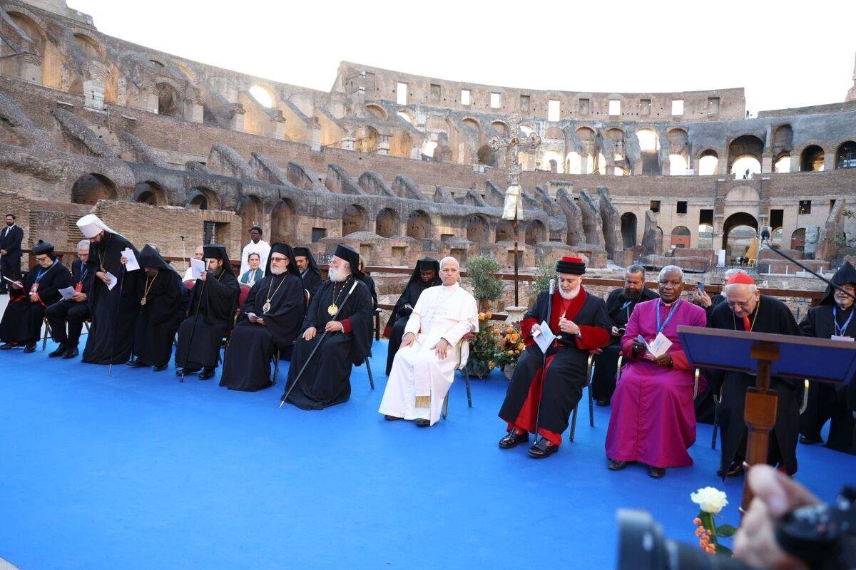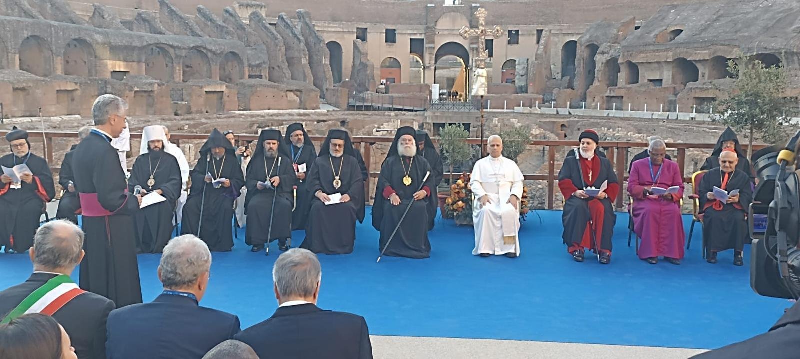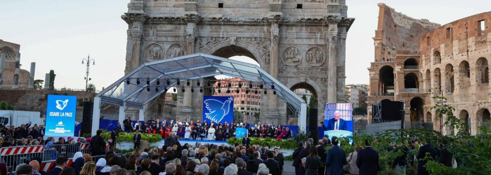 Հոկտեմբերի 28-ի ժամը 16։30-ին, տարբեր կրօններու ներկայացուցիչներ միաժամանակ աղօթք բարձացուցին յանուն խաղաղութեան։ Քրիստոնեաներու միջեկեղեցական աղօթքը կատարուեցաւ Պապ Լեոն ԺԴ․-ի նախագահութեամբ Հռոմի գլխաւոր խորհրդանիշներէն մէկու՝ Քոլիսէոմի /Կոլիզեումի/ մէջ։ Այլ կրօններու ներկայացուցիչները աղօթեցին Քոլիսէոմի հարակից տարբեր վայրերու մէջ։ Շուրջ կէս ժամ անց բոլորը համախմբուեցան Քոլիսէոմի մօտակայքը բարձրացող Կոստանդինոսի կամարի առջեւ պատրաստուած հարթակի մօտ՝ մասնակցելու եզրափակիչ արարողութեան։ Աւարտին՝ հռչակուեցաւ Խաղաղութեան կոչը, ապա տարբեր կրօններու ներկայացուցիչներ վառեցին Խաղաղութեան մոմակալը /մոմերը/ որպէս համերաշխութեան եւ յոյսի նշան։ Այնուհետեւ կոչի թղթօրինակները բաժնուեցան ներկաներուն՝ որպէս խաղաղութեան ուղերձի տարածման խորհրդանշական քայլ։