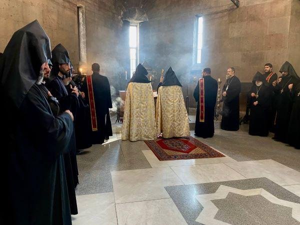 Մայր Աթոռ Սուրբ Էջմիածնի լուսարարապետ Գերաշնորհ Տ․ Մուշեղ եպիսկոպոս Բաբայեանը Մայր Աթոռի միաբանութեան անունից ողջունեց եւ բարի գալուստ մաղթեց Սահակ Պատրիարքին: