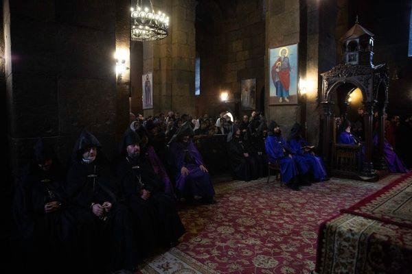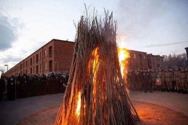 Այնուհետեւ «Քրիստոս փառաց» տաղի երգակցութեան ներքոյ Սուրբ Գայանէ եկեղեցու Խորանի կանթեղից վառուած մոմով Նորին Սրբութիւնը Յիսուս Քրիստոսին խորհրդանշող կենսատու լոյսը փոխանցեց ներկայ հաւատաւոր ժողովրդին: Նախատօնակից յետոյ հոգեւորականների թափօրն ուղղուեց դէպի միաբանական շէնքի շրջափակ, ուր, ներկայութեամբ բազում հաւատացեալ հայորդիների, ձեռամբ Հայոց Հայրապետի, վառուեց Տէառնընդառաջի խարոյկը: