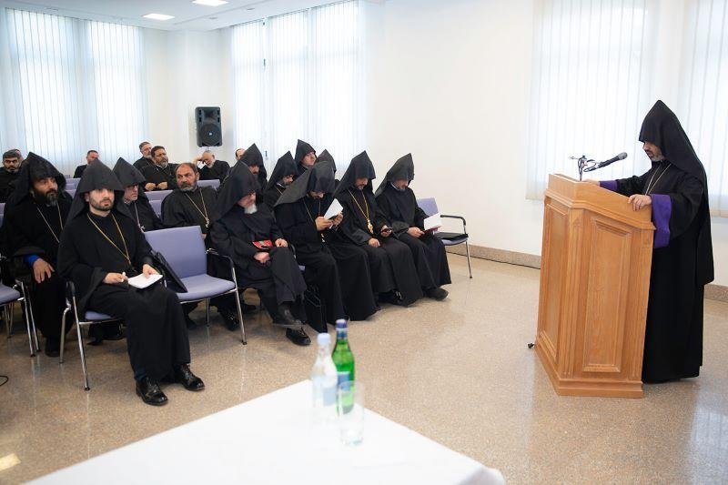 «Հայ Առաքելական Եկեղեցու քարոզչական ու հոգեւոր-կրթական առաքելութիւնը ժամանակակից աշխարհում. տեսլականներ եւ մարտահրաւէրներ» թեմայով զեկոյց ներկայացրեց Մայր Աթոռի Քրիստոնէական դաստիարակութեան կենտրոնի տնօրէն Հոգեշնորհ Տ. Զաքարիայ ծայրագոյն վարդապետ Բաղումեանը: Հայր Սուրբն ի մասնաւորի անդրադարձաւ երիտասարդների հոգեւոր դաստիարակութեան կարեւորութեանը, նրանց բարոյական եւ ազգային կերտուածքի ձեւաւորմանը, հոգեւոր անվտանգութեան ապահովմանը, աղանդաւորական շարժումների դէմ պայքարին, ինչպէս նաեւ հոգեւոր ուսումնական հաստատութիւններում կրթութեան արդիւնաւէտութեան բարձրացմանը: