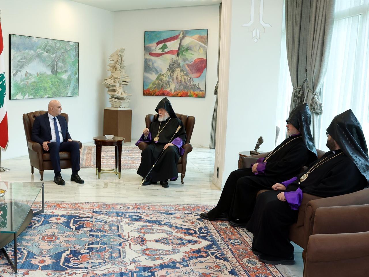 «Այցելեցինք Լիբանանի հանրապետութեան նախագահ Նորին Վսեմութիւն Զօրավար Ժոզէֆ Աունին, մեր համայնքին անունով եւ անձնապէս Մեր զօրակցութիւնը յայտնելու իր եւ իր գլխաւորած կառավարութեան աշխատանքներուն ու կեցուածքներուն համար: