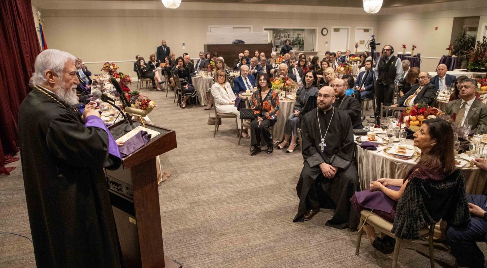 Նոյն օրը երեկոյեան, ի պատիւ Վեհափառ Հայրապետին սիրոյ սեղան մը սարքուեցաւ։ Ներկայ էին շուրջ հարիւր ազգայիններ՝ բարերարներ եւ հոգաբարձութեան անդամներ։ Յաջորդաբար խօսք առին հոգեւոր հովիւը, Գրիգոր Մահսերեճեանը եւ Անուշաւան արքեպիսկոպոսը։ Երեկոն վարեց Դպրեվանքի նախկին աշակերտ եւ արեւմտեան թեմի ազգային վարչութեան անդամ Մարք Շիրին։ Անոնք անդրադարձան Մեծի Տանն Կիլիկիոյ Կաթողիկոսութեան անցնող 30 տարիներու ընթացքին զանազան բնագաւառներէ ներս կատարուած իրագործումներուն, միաժամանակ շեշտեցին Կաթողիկոսութեան հետզհետէ ծաւալող համազգային առաքելութեան կարեւորութիւնը։