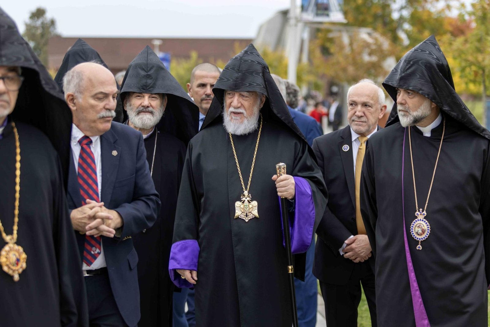Արարողութեան աւարտին խօսք առնելով Նորին Սուրբ Օծութիւնը՝ ողջունեց յուշարձանի ծրագիրին իրագործումը՝ Ֆրեզնոյի մէջ Հայաստանի Հանրապետութեան պատուոյ հիւպատոս Պերճ Աբգարեանի եւ համալսարանի հայագիտական ուսմանց բաժինի տնօրէնին գործակցութեամբ. ան ըսաւ՝ «կրնայ ըլլալ, որ պետութիւններ զանազան հաշիւներէ մղուած “ցեղասպանութիւն” բառը չգործածեն, ինչ որ 1915-ին Թուրքիոյ պետութեան կողմէ կատարուեցաւ հայ ժողովուրդին դէմ: Սակայն, մէկ ու կէս միլիոն հայերու ջարդը ծրագրուած ու գործադրուած ցեղասպանութիւն էր միջազգային օրէնքին համաձայն: Ցեղասպանութիւնը հայ ժողովուրդի հաւաքական յիշողութեան մէջ ամրօրէն արմատացած է: Հայ ազգը կը պահանջէ Ցեղասպանութեան ճանաչում ու հատուցում»:
