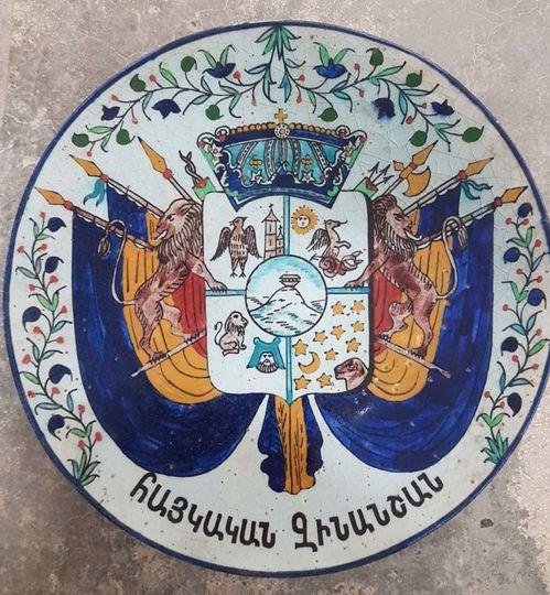 Այս առթիւ ալ պիտի ուզէի իմ հարազատներուս եւ ընկերներուս հետ կիսուիլ Նշան աւագ Պալեանի եւ Մկրտիչ Գարագաշեանի ձեռամբ կերտուած եւ Հայոց Զինանշանը պարփակող յախճապակեայ բացառիկ ափսէին լուսանկարը։ Այն պատրաստուած է 1930 թուականին ու անոր մէկ օրինակը կը պահուի Ծիծեռնակաբերդի Հայոց Ցեղասպանութեան Թանգարանին մէջ»։