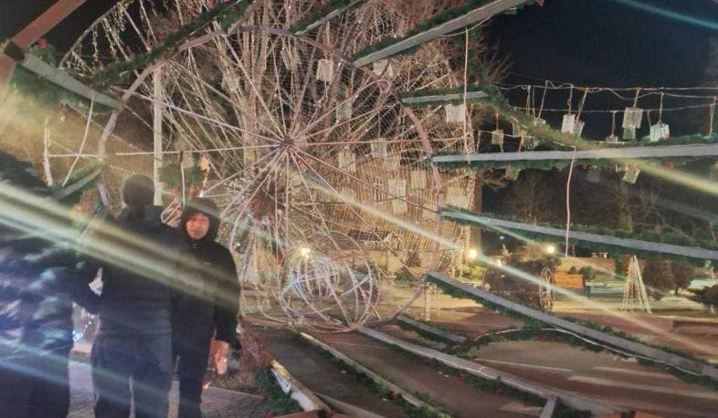 Ապարանի մէջ քամիի պատճաօով մօտ մէկ քիլոմեթրանոց ճեմուղիի հսկայական զարդարանքն ու փայտեայ յենասիւներն ինկած են։