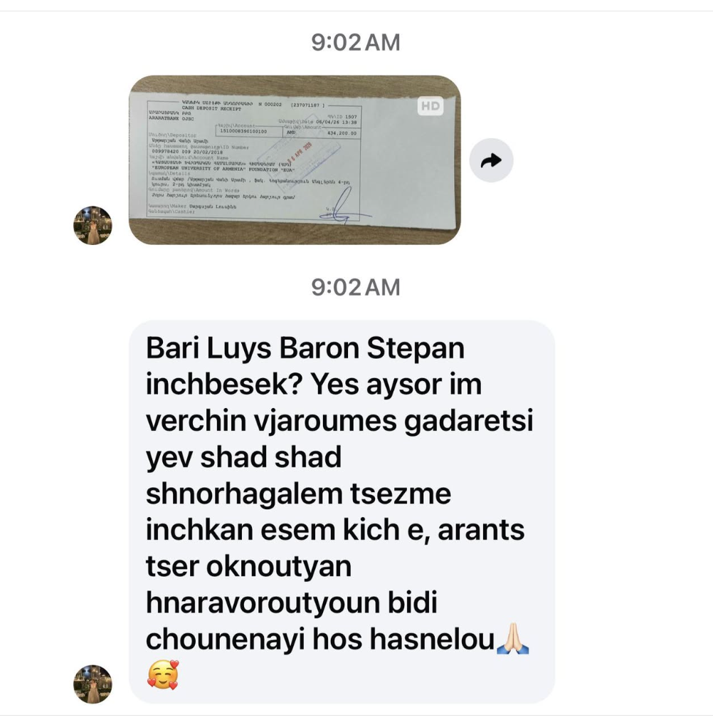 «Քու մասնակցութիւնդ՝ մէկ ուսանողի ապագայ»․ աջակցութեան կոչ Ստեփան Փարթամեանէն