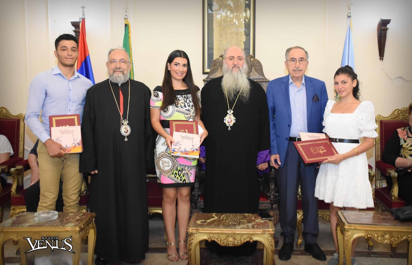 Այնուհետեւ, Բերիոյ Հայոց Թեմի Բարեջան Առաջնորդ Գերշ. Տէր Մակար Սրբ. Արք. Աշգարեանի ձեռամբ եւ բարերար Կիրակոս Գույումճեանի մասնակցութեամբ՝ «Ներսէս Շնորհալի» ուսումնական մրցանակով պարգեւատրուեցան հալէպահայ վարժարաններուն մէջ բարձրագոյն նիշերը ապահոված հետեւեալ երեք շրջանաւարտները՝