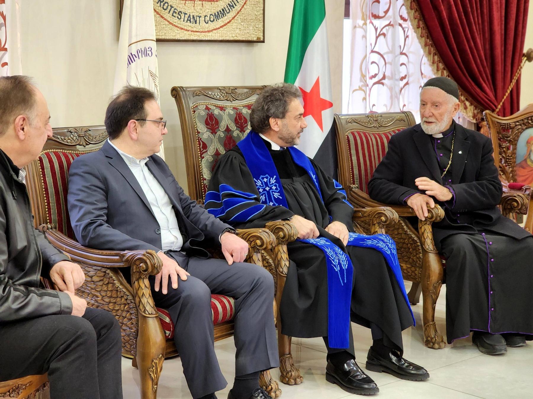 Կիրակի, 5 Ապրիլ 2026-ին, Տէր Յիսուս Քրիստոսի Հրաշափառ Յարութեան տօնին առիթով, Սուրիոյ Հայ Աւետարանական Համայնքի Պետ Վեր. Դոկտ. Յարութիւն Սելիմեանն ու Համայնքային ժողովը, Յարութեան պաշտամունքէն ետք, Համայնքապետարանի դահլիճին մէջ ընդունեցին շնորհաւորական այցելութիւններ։