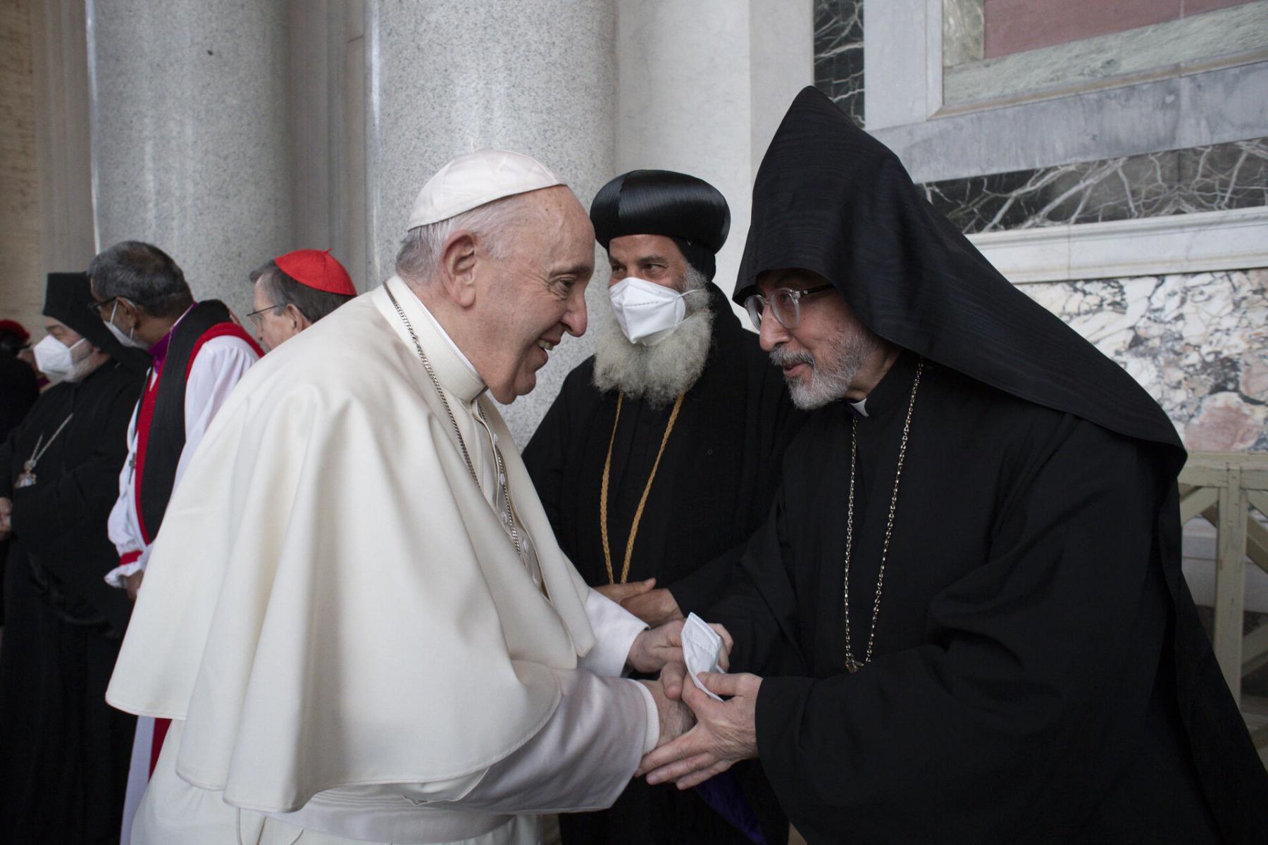 Արարողութեան սկիզբը Խաժակ Սրբազան Քահանայապետին փոխանցեց Ամենայն Հայոց Վեհափառի եղբայրական ջերմ ողջոյնները ու լաւագոյն մաղթանքները։