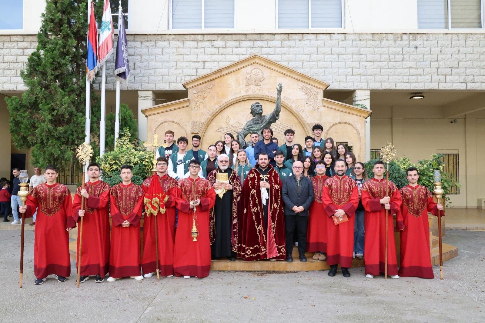 Տօնակատարութիւնը սկսաւ, երբ աշակերտական թափօրը դուրս գալով Սուրբ Փրկիչ եկեղեցիէն հասաւ Մեսրոպեանի շրջափակ, կազմելով «Անդաստան»ի բոլորակը։ Արարողութիւնը գլխաւորեց վարժարանի հոգեւոր տեսուչ Հայր Սահակ վարդապետ Քէշիշեան, որուն կողքին էին Տէր Ռաֆայէլ քահանայ Ժաուհարժի եւ տիրացու Պօղոս կիսասարկաւագ Էմիշեան։ Սպասաւորումը կատարեցին աւարտական դասարանի աշակերտները։